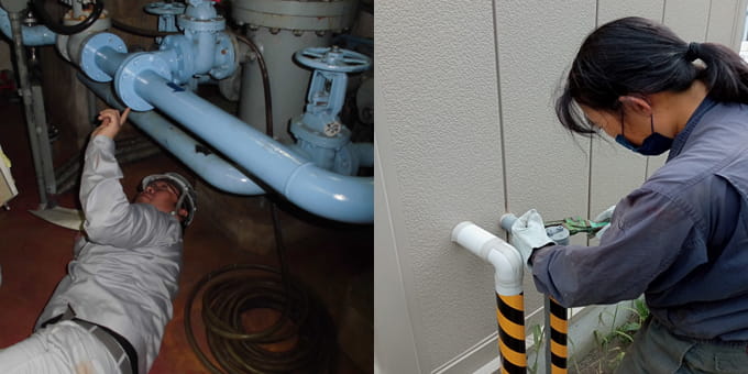 ・主に設備機器の分解点検・修理や設備の配管工事を行います。